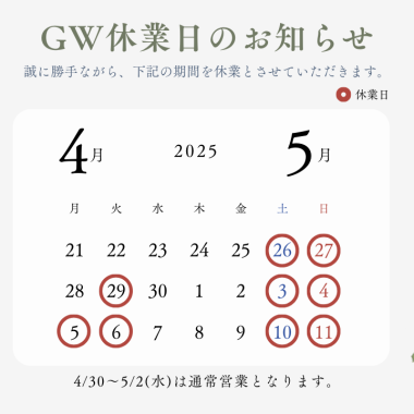 ◆ゴールデンウイーク期間中の営業のお知らせ◆