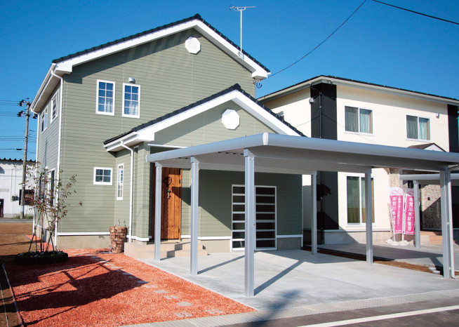 そんな思いから、女性目線で一日の生活をシミュレーションしながら、女性スタッフとOB会員様の要望を取入れた家造りを進めました。収納と家事動線に視点をおき、ストレスを感じることなく家事ができる動線と、部屋ごとに用途や目的に合った使い易い収納を取入れ、便利な暮らしの出来る住宅です。さらに太陽光発電システム設置によるオール電化住宅。省エネで環境と健康に優しいエコハウスは、小さい中にもアイディアがいっぱい詰まった住宅です。