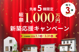 \ 先着5棟限定→残り3棟! / 総額1,000万円 新築応援キャンペーン