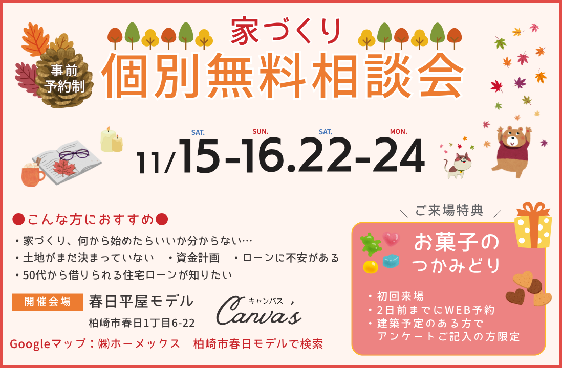 【11/15-16・22-24】家づくり個別無料相談会 ※ご来場特典あり
