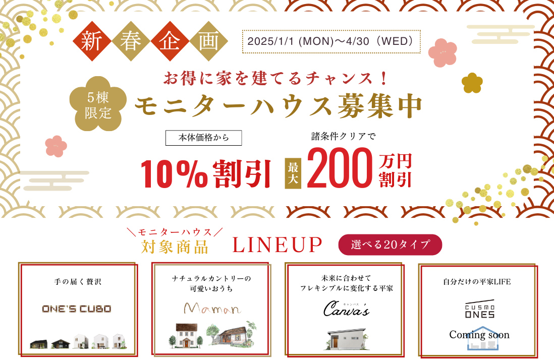 【新春企画】お得に家を建てられるチャンス☆モニターハウス募集中!