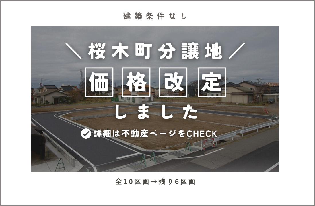 【桜木分譲地】価格改定しました! 桜木分譲地(全10区画)の価格を改定しました! ☑春日公園まで徒歩1分 ☑徒歩5分圏内に充実した医療環境と生鮮食品が揃ったスーパーあり! ☑春日郵便局まで徒歩6分 などなど、大人も子供も暮らしやすいロケーションとなっております。 詳細はこちらからCHECK→https://www.homex.co.jp/estate/estate/school/kashiwazaki-area/?t=landlist