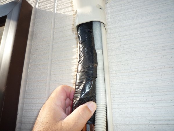 夏の冷房・除湿運転時にエアコン室内機についた結露水を排水するためのドレンパイプ。