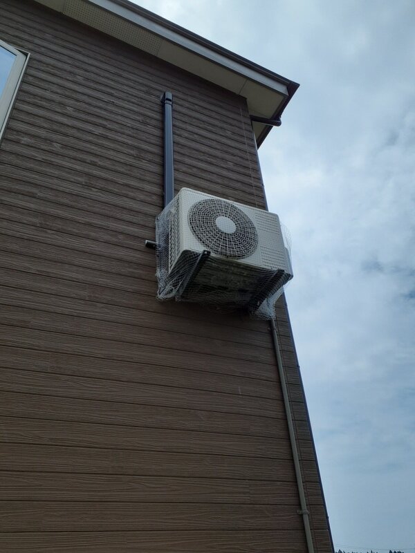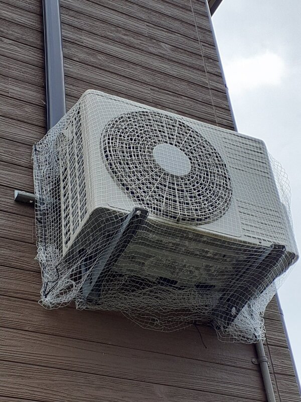 室外機を防鳥ネットで包みました。