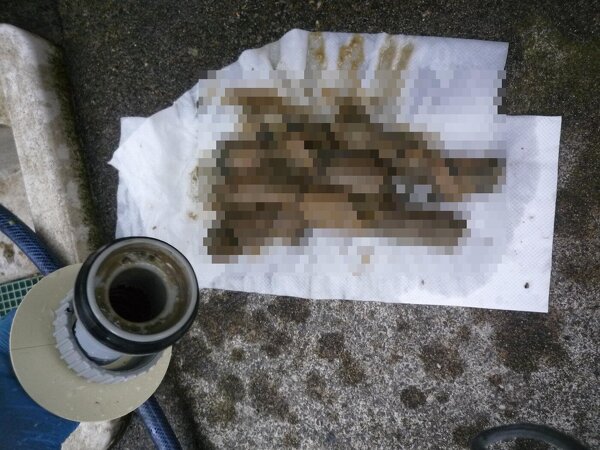 配管内の付着物を押し出すと「出るわ、出るわ。。。」