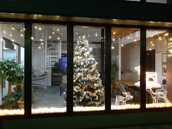 今年も去年に続き、土合本社に大きなクリスマスツリーが完成しました。