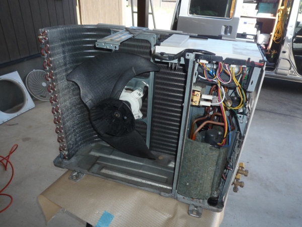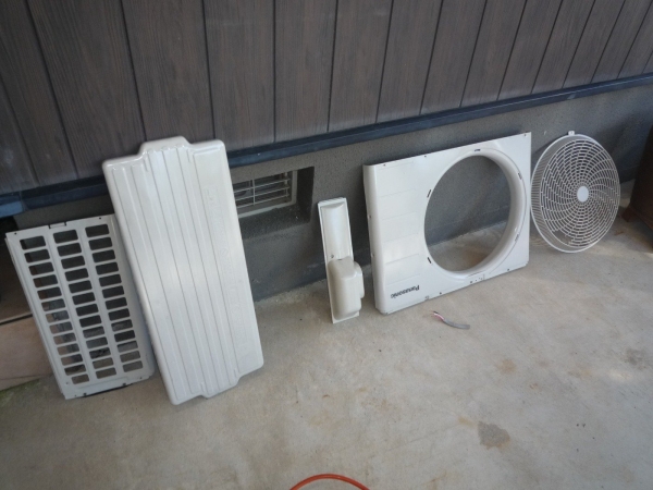 中古のエアコンを、塩害対策(防錆塗装)をします。