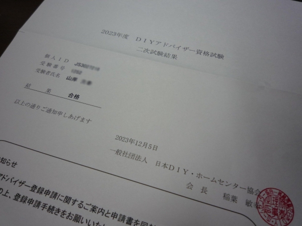 2023年度の資格試験の結果が発表されていました。