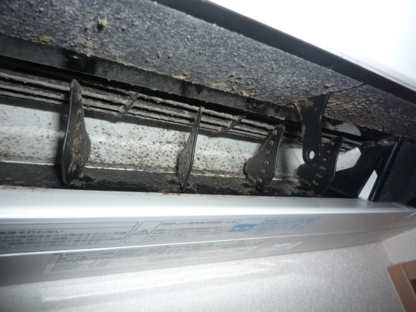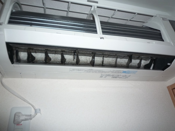 夏中、24時間フル稼働していたエアコンが、3年間の使用でホコリとカビだらけになっていました。