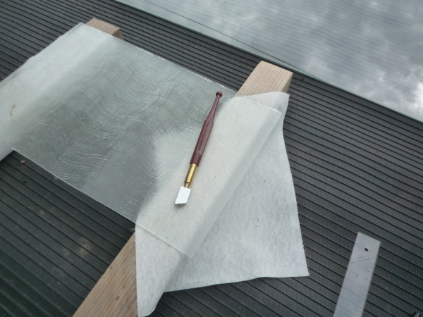 金具のビスも錆びていて、取り外す時にガラスを割ってしまったので、新たにガラスカットからのスタートです。