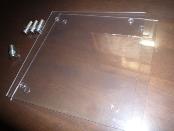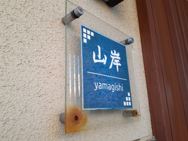 ステッカー用紙にプリンターでデザイン・印刷し、2枚のガラスの間に挟んだだけの、超簡単仕様の表札でした。
