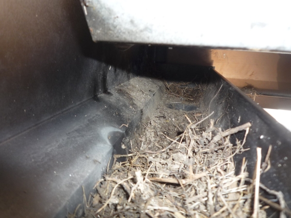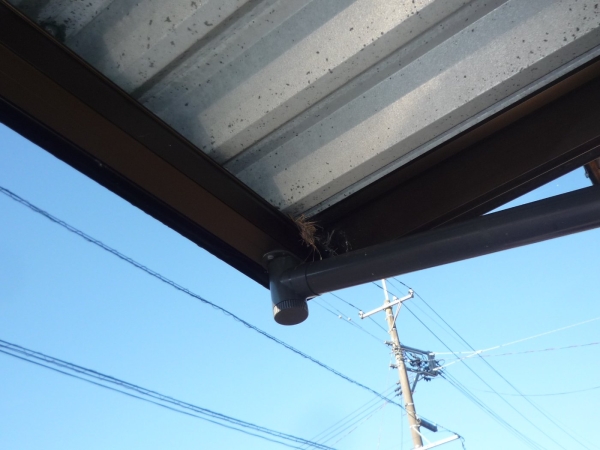 毎年のようにカーポートの雨樋に鳥が巣を作ります。