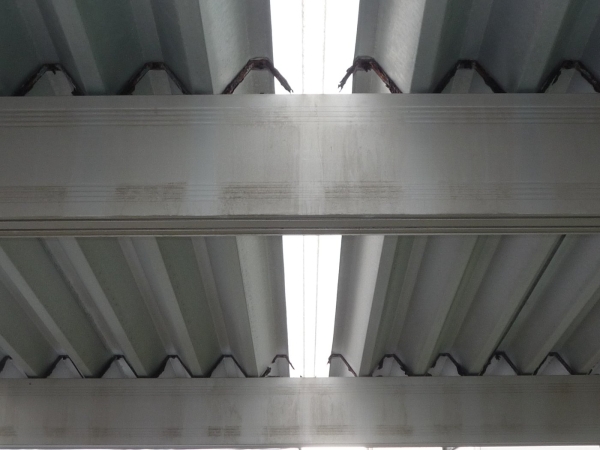 梁と折板屋根を接続する部材(タイトフレーム)が錆で腐食しています。