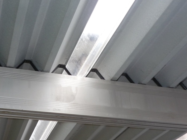今回は、構造体のアルミ柱や梁、折板屋根は多少の劣化はあるもののまだ使えます。