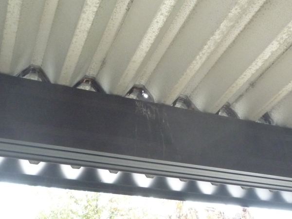 現地を確認したところ、原因はタイトフレーム(屋根パネルを固定する金具部分)の錆びによるものでした。