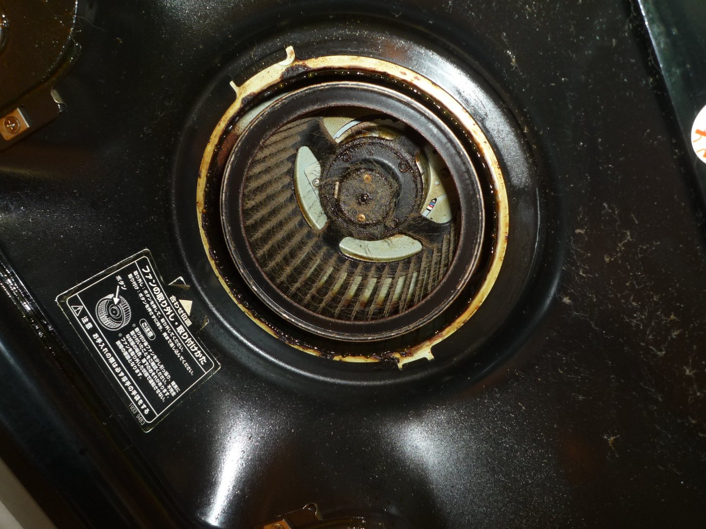 ファンや内部には、長年蓄積された油汚れがびっしり。